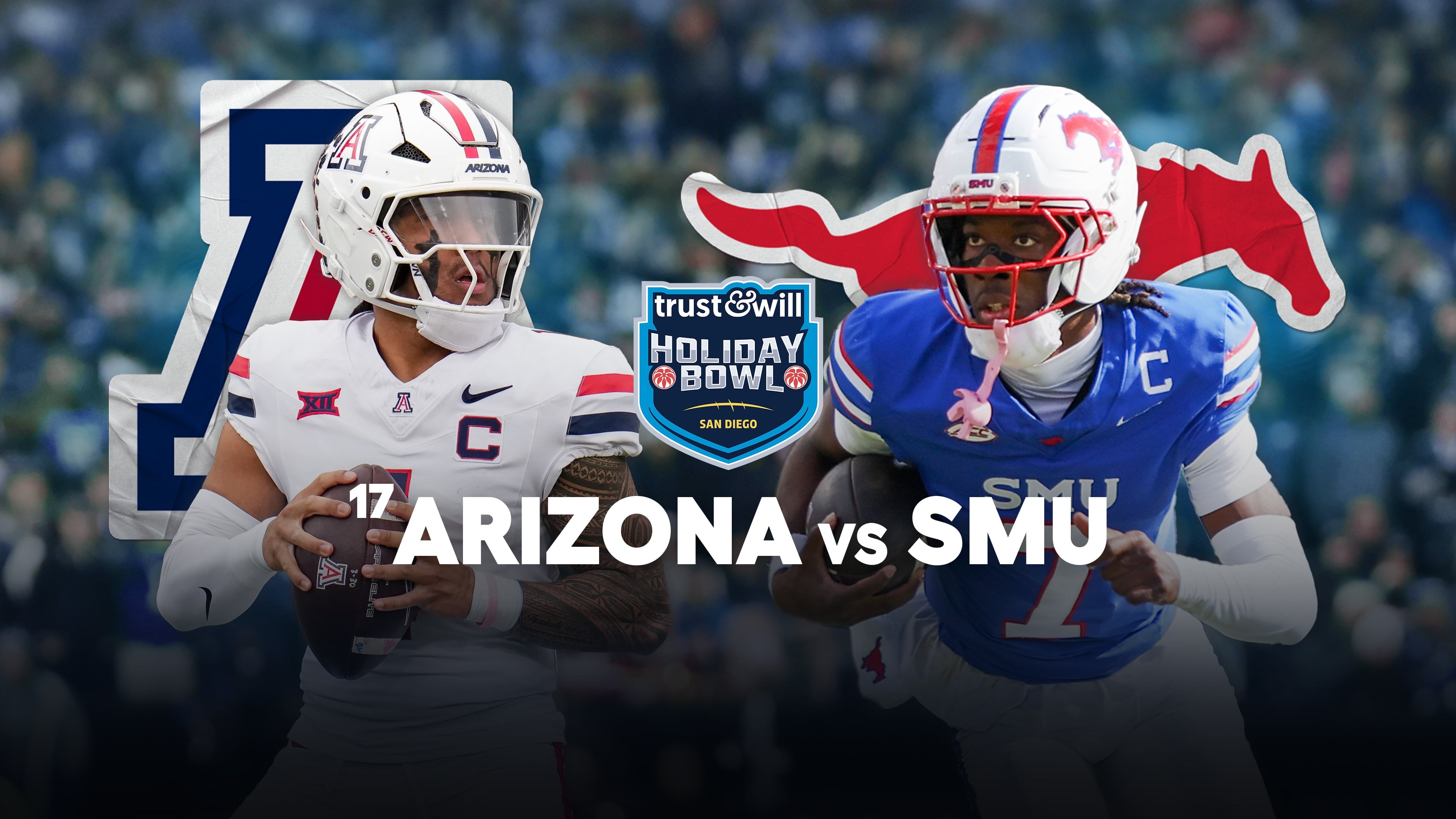 The No. 17 Wildcats and Mustangs meet for the first time since 1985, in the Holiday Bowl. Arizona closed the regular season with five straight wins. Wildcats junior Noah Fifita threw nine TD passes during the streak. SMU went 6-2 down the stretch.