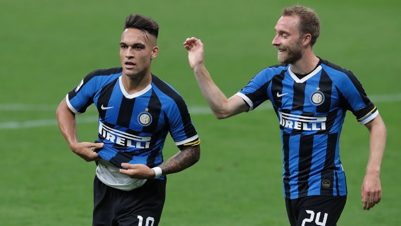 - 46': Attempt blocked. Christian Eriksen (Inter Milan) right footed shot from outside the box is blocked. Assisted by Lautaro Martínez.