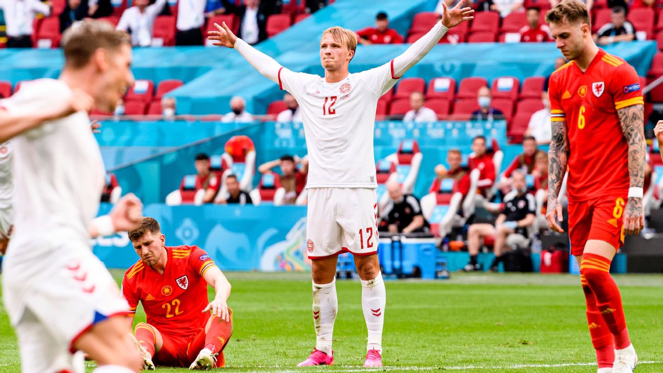 · UEFA European ChampionshipDenmark hit four past Wales to reach Euro 2020 quarterfinals