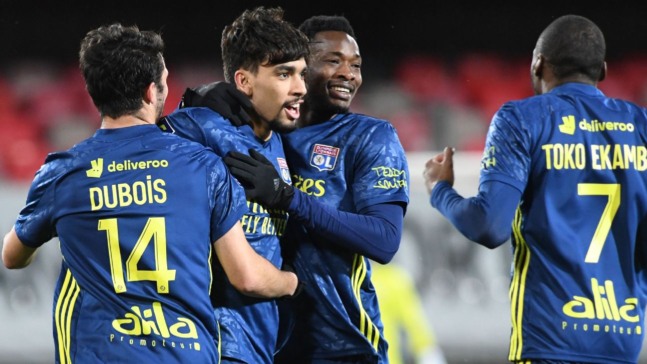 · French Ligue 1Lyon go top in Ligue 1 with 3-2 win at Brest