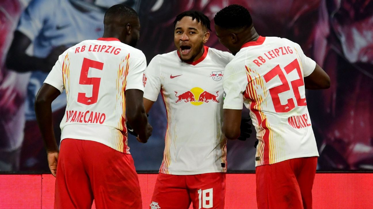 - 4': Attempt missed. Christopher Nkunku (RB Leipzig) right footed shot from the left side of the box is close, but misses the top right corner.