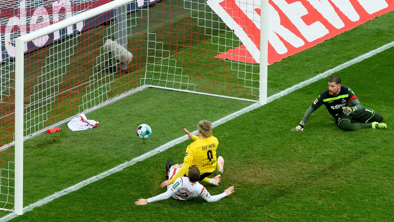 Last-gasp Haaland goal gives Dortmund 2-2 draw at Cologne