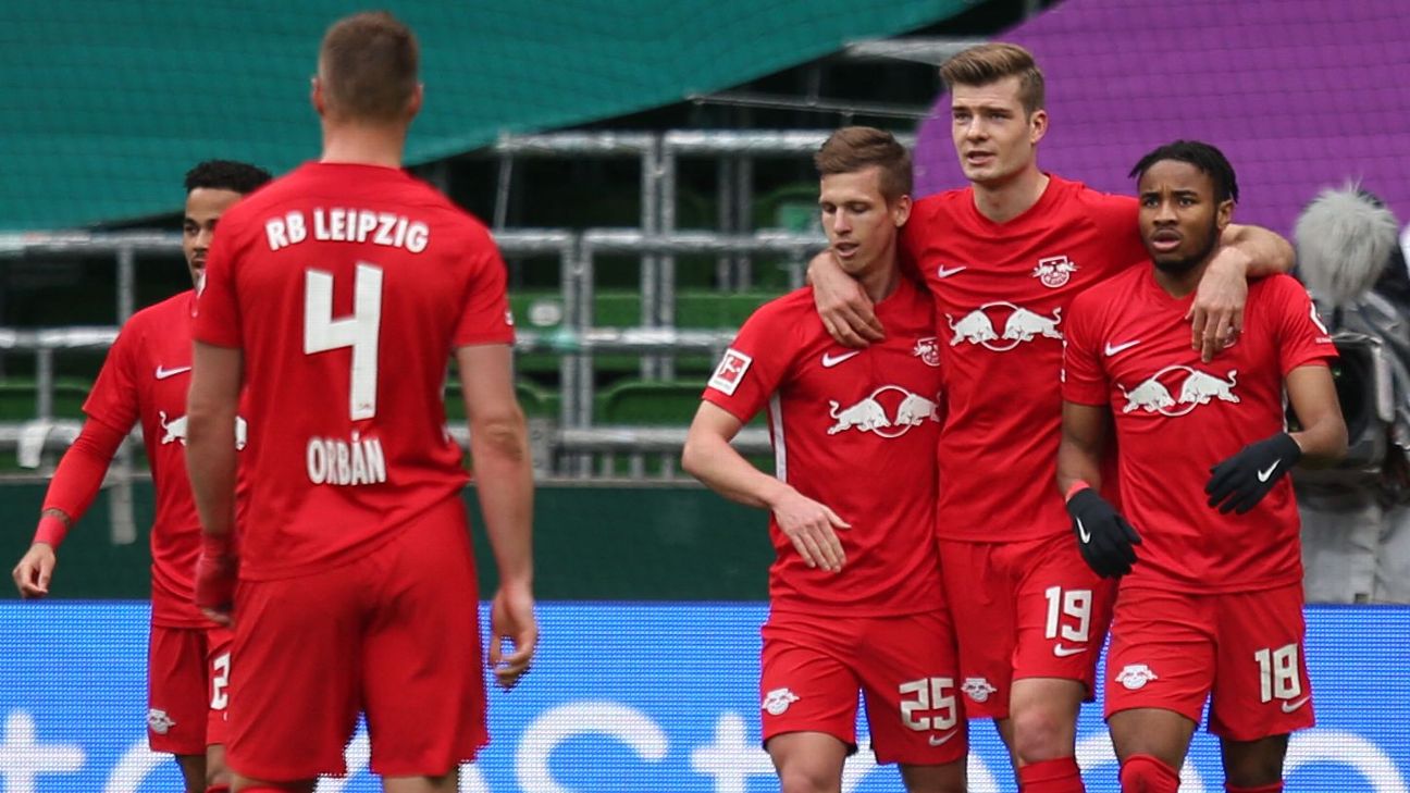 RB Leipzig scored three first-half goals as they thrashed Werder Bremen 4-1 away helped by Alexander Sorloth's double to close in on leaders Bayern