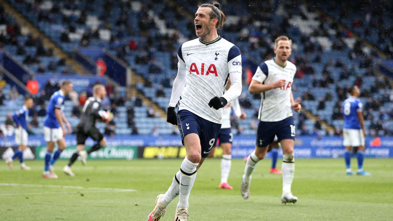 - 90'+6': Goal! Leicester City 2, Tottenham Hotspur 4. Gareth Bale (Tottenham Hotspur) left footed shot from very close range to the centre of the goal.