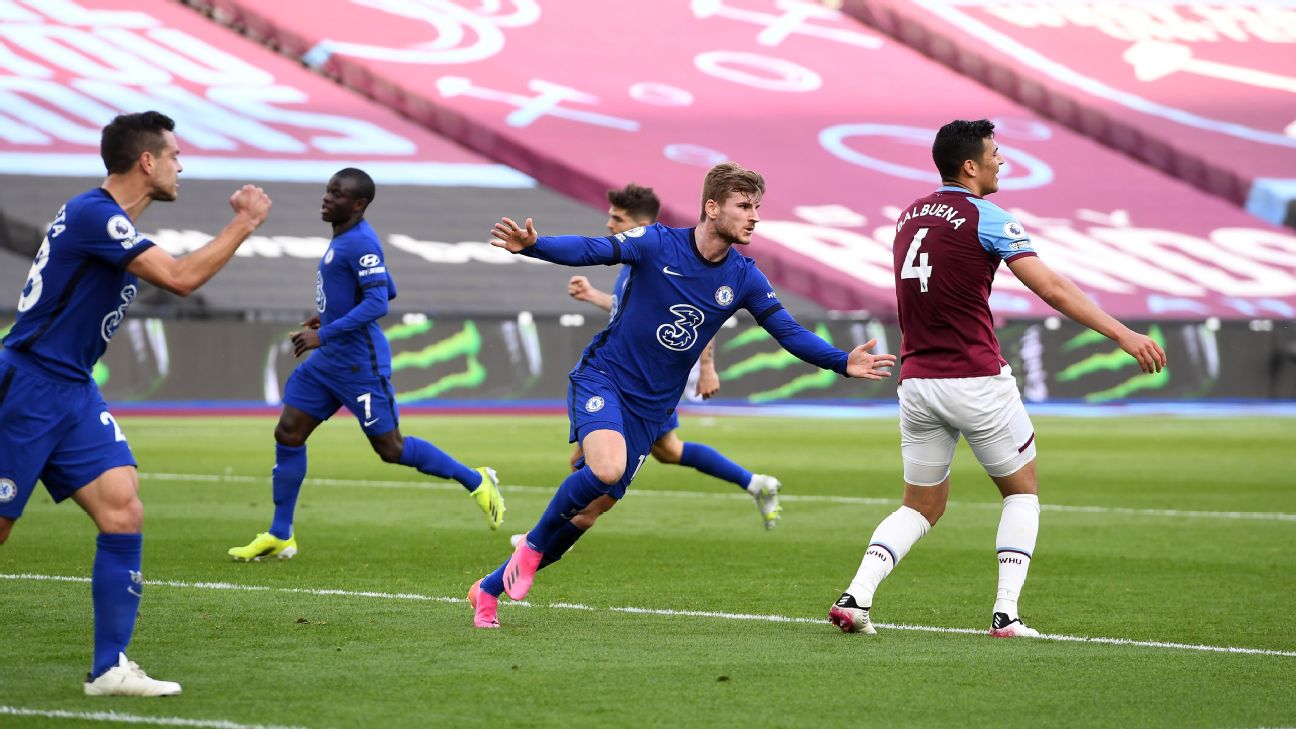 · English Premier LeagueWerner earns Chelsea vital win over West Ham in Champions League race