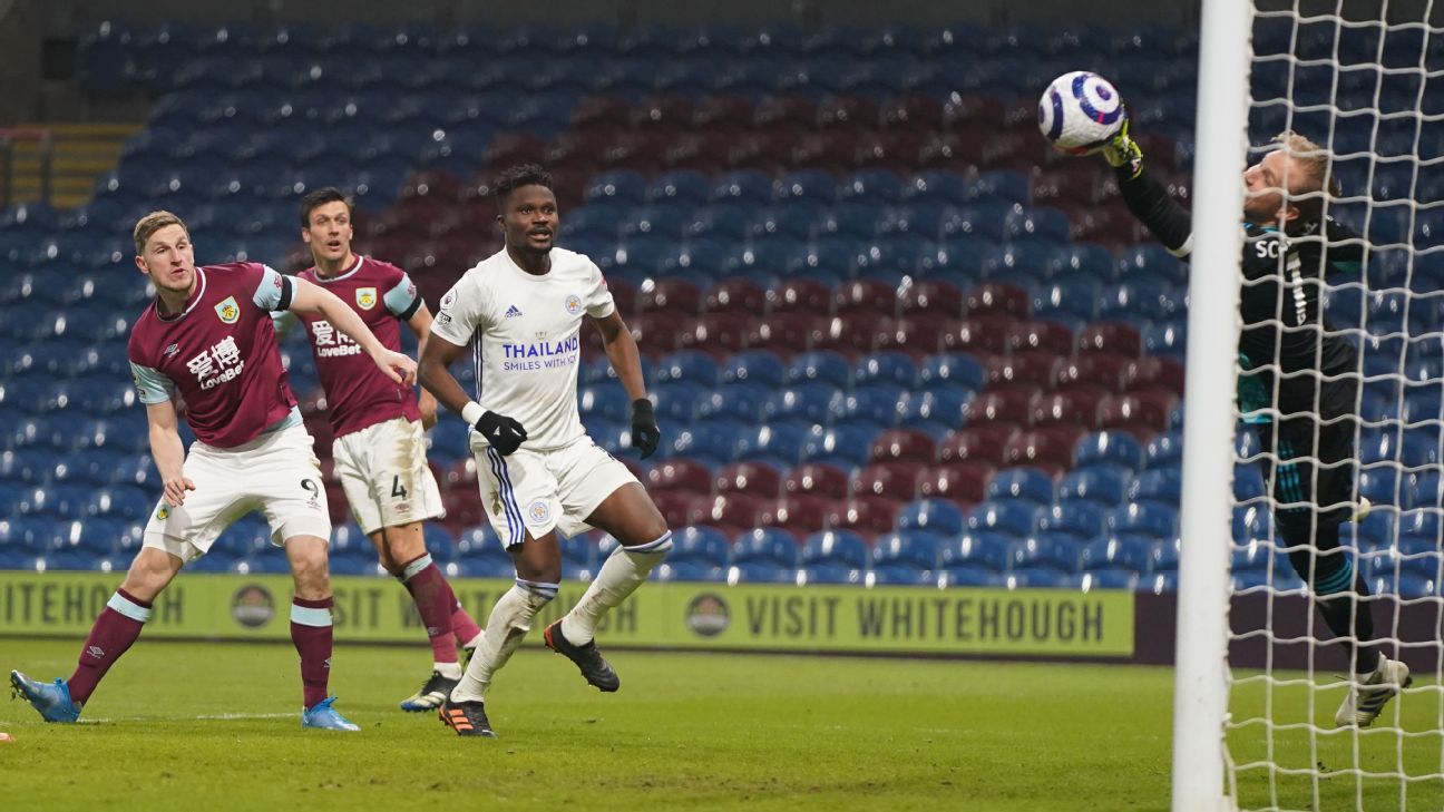 · English Premier LeagueDepleted Leicester City held to draw at Burnley