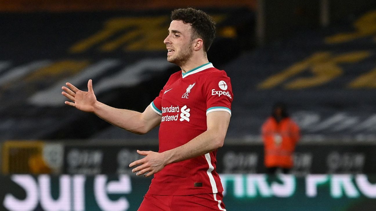 - 52': Diogo Jota (Liverpool) wins a free kick on the left wing.