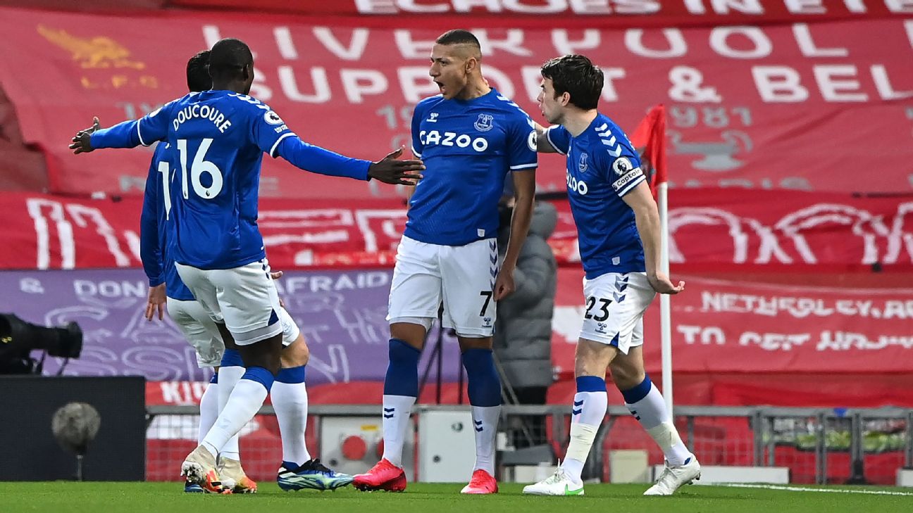 · English Premier LeagueLiverpool woe continues as Everton earn rare Merseyside derby win at Anfield