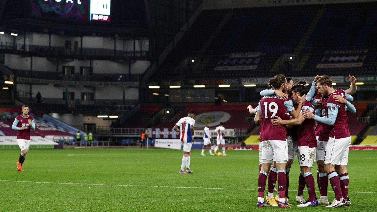 · English Premier LeagueBurnley get first win with Wood strike against Palace