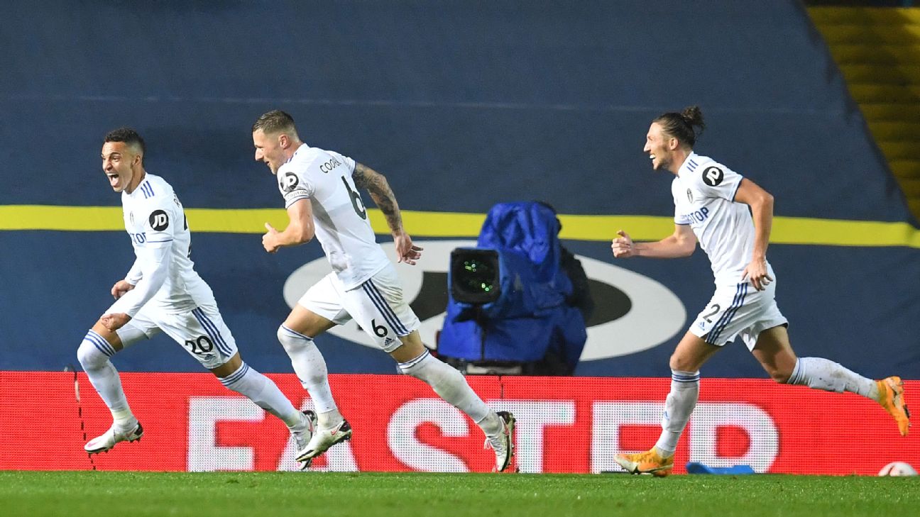 - 77': Substitution, Leeds United. Leif Davis replaces Mateusz Klich.