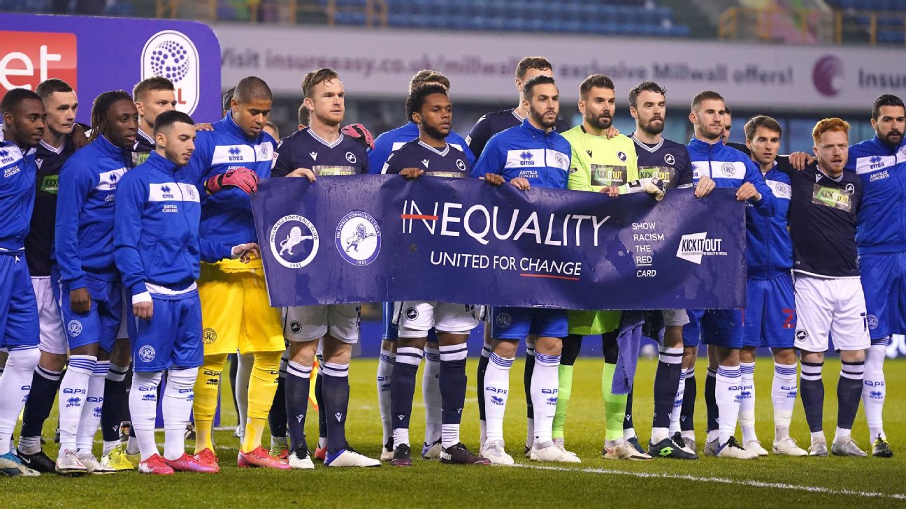 · English League ChampionshipMillwall fans applaud anti-racist banner days after booing players for kneeling