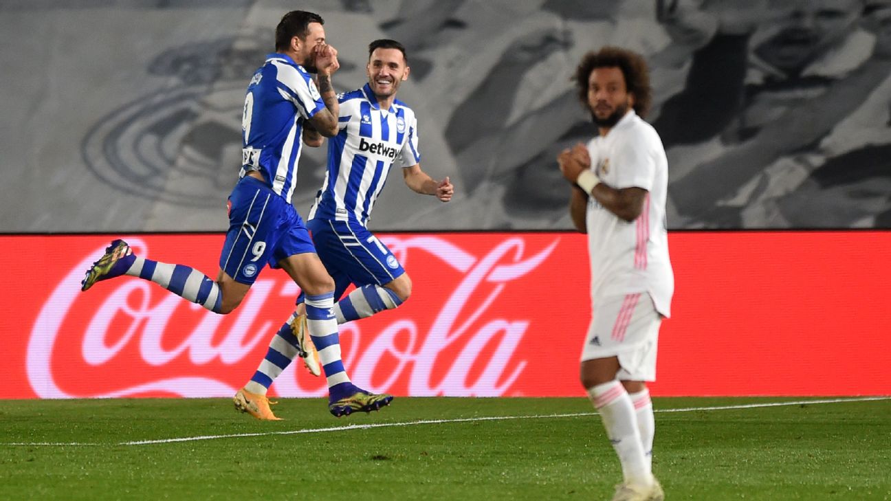 - 0': Match ends, Real Madrid 1, Alavés 2.