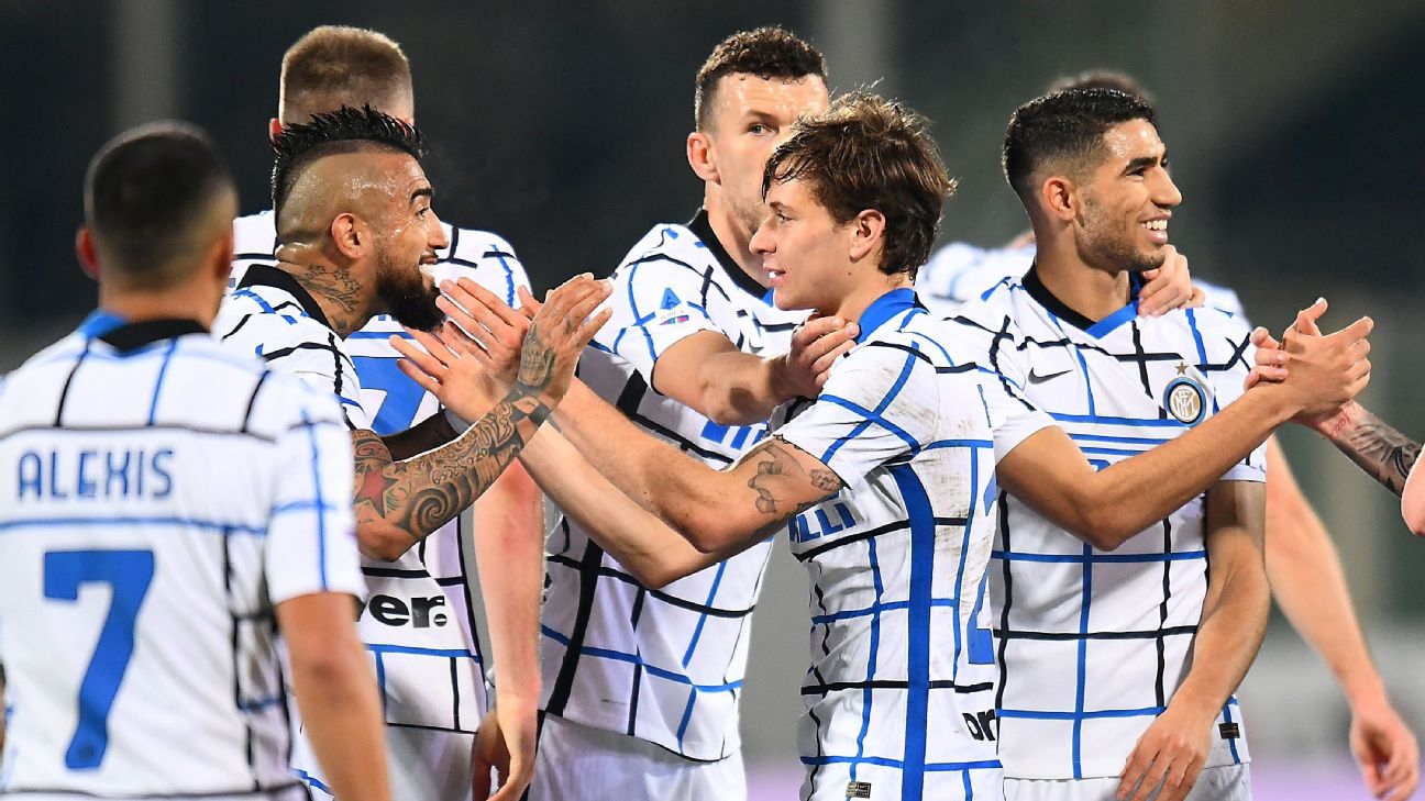 Inter Milan moved top of the Serie A standings with a comfortable 2-0 win at Fiorentina thanks to goals from Nicolo Barella and Ivan Perisic.