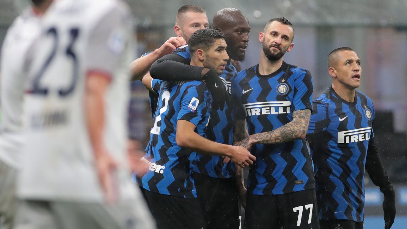 Inter Milan wing back Achraf Hakimi bagged a brace after Romelu Lukaku had opened the scoring in a comfortable 3-1 win over Bologna in Serie A.