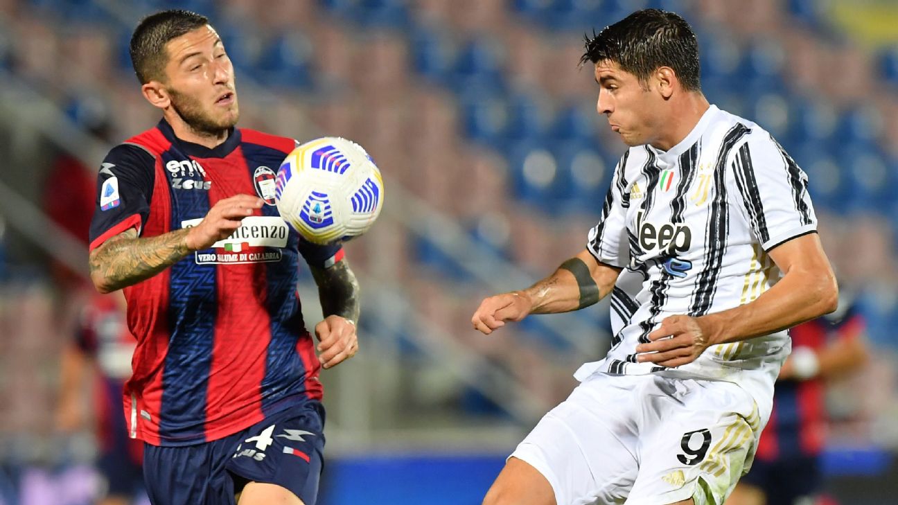 - 21': Goal! Crotone 1, Juventus 1. Álvaro Morata (Juventus) left footed shot from very close range to the high centre of the goal. Assisted by Federico Chiesa.