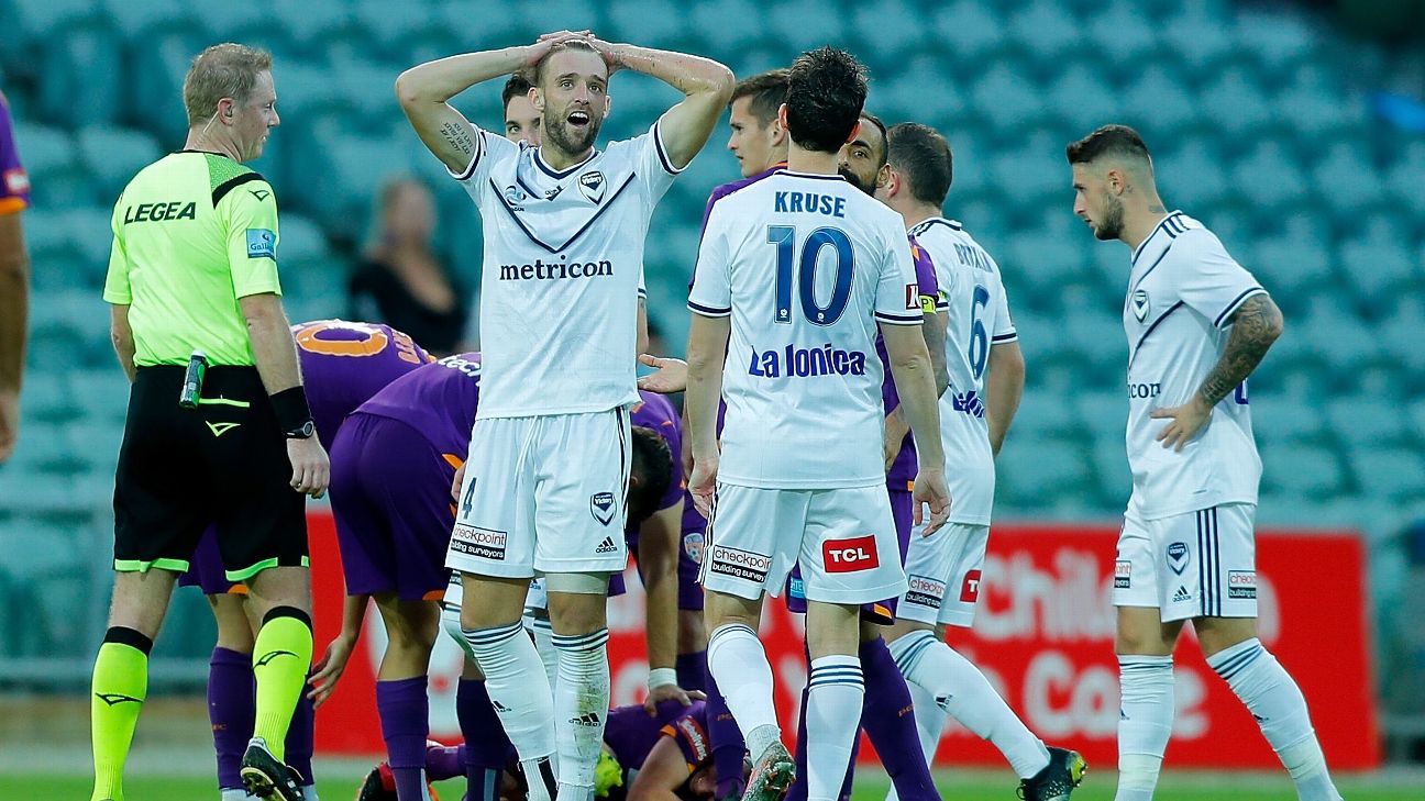 - 0': Match ends, Perth Glory 2, Melbourne Victory 1.