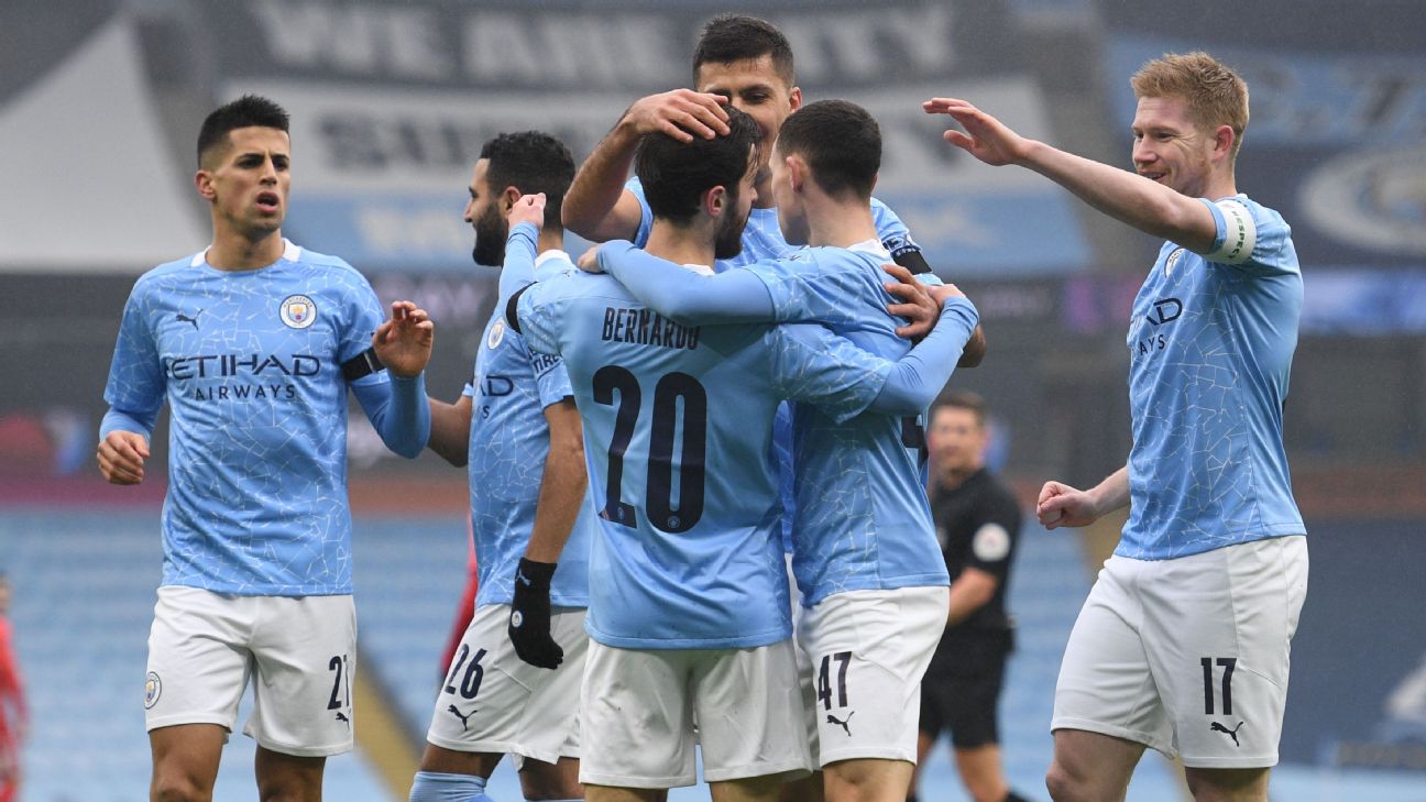 - 41': Attempt missed. Bernardo Silva (Manchester City) left footed shot from the left side of the box is close, but misses to the left. Assisted by Phil Foden.