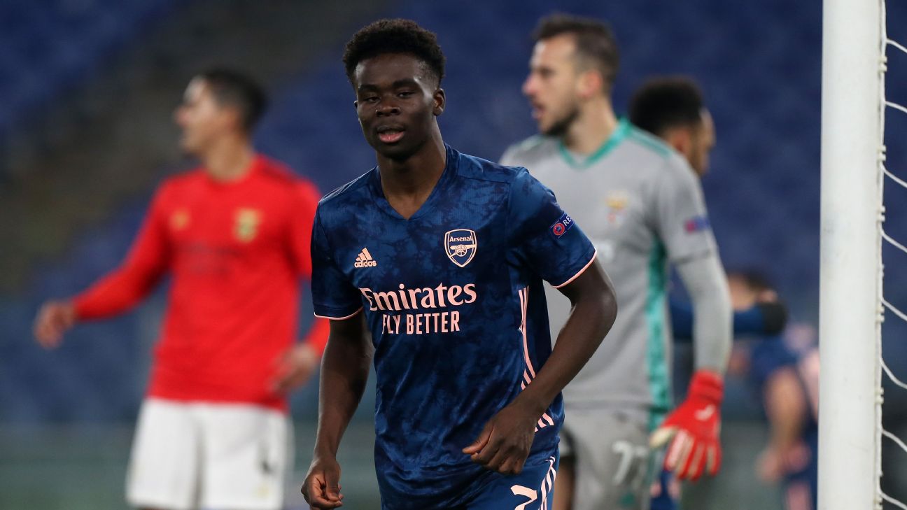 Bukayo Saka's goal gave Arsenal a useful away goal in a 1-1 draw against Benfica in their Europa League round of 32 first leg on Thursday.
