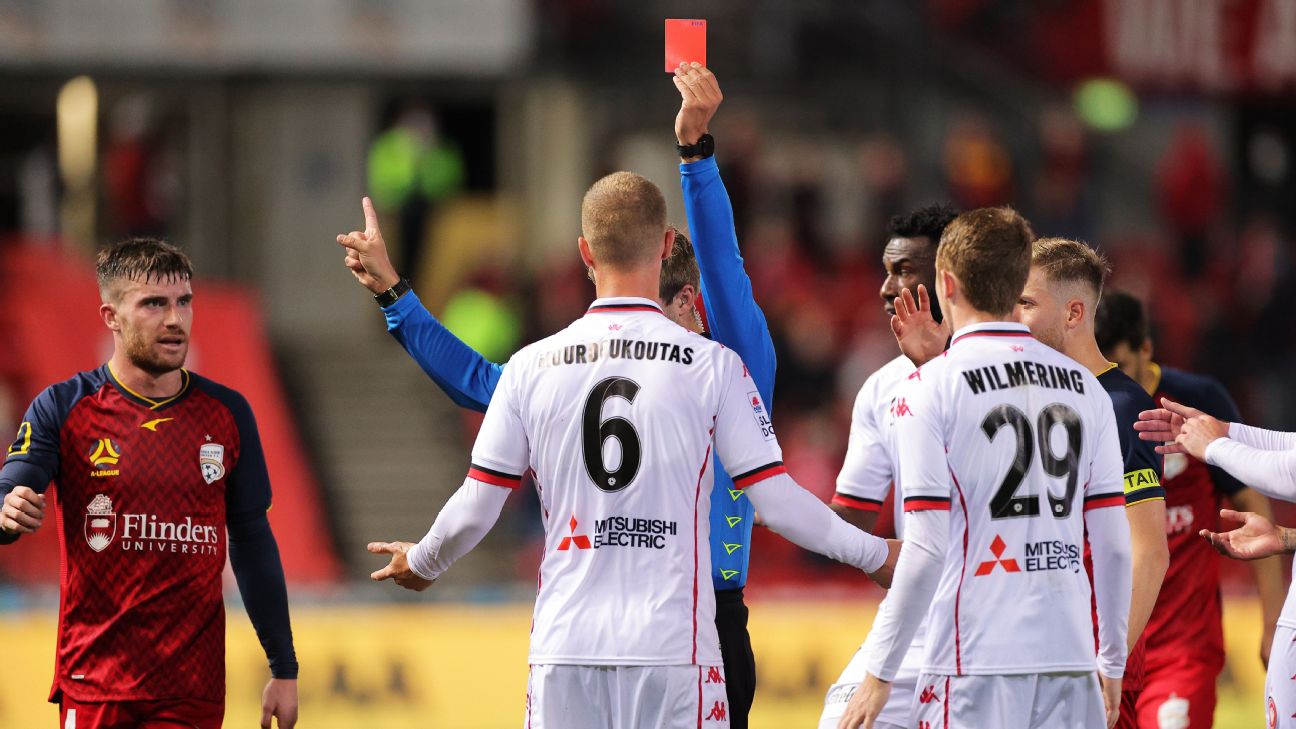 - 36': Tass Mourdoukoutas (Western Sydney Wanderers FC) is shown the red card.