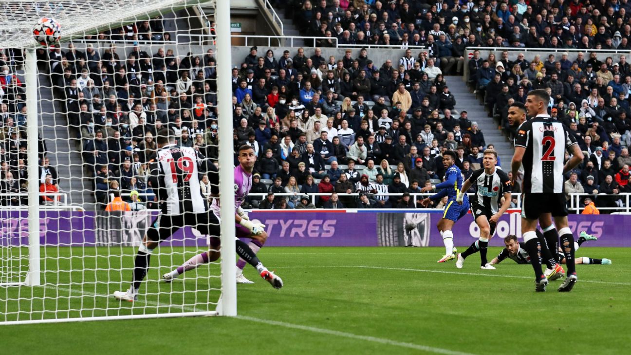 - 77': Goal! Newcastle United 0, Chelsea 2. Reece James (Chelsea) right footed shot from the right side of the box to the top right corner.