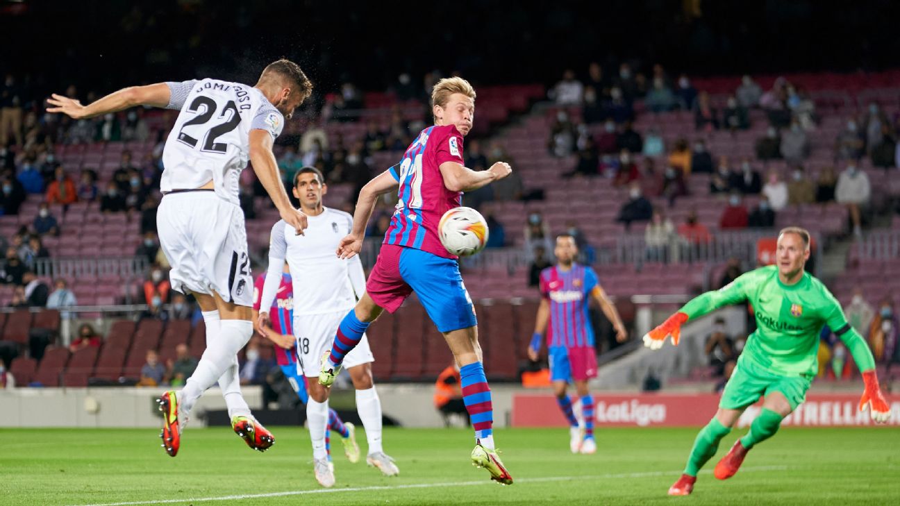 - 90': Goal! Barcelona 1, Granada CF 1. Ronald Araujo (Barcelona) header from very close range to the bottom right corner. Assisted by Gavi.