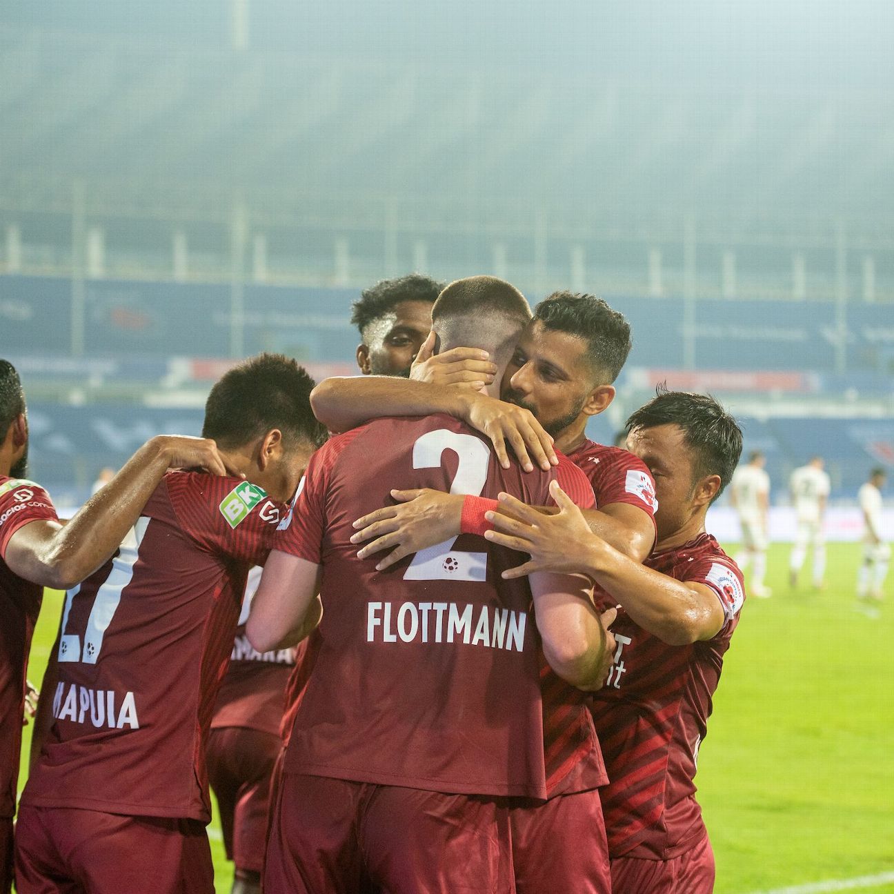 - 68': Goal! NorthEast United 2, SC East Bengal 0. Patrick Flottmann (NorthEast United) header from very close range to the bottom left corner. Assisted by Imran Khan following a set piece situation.