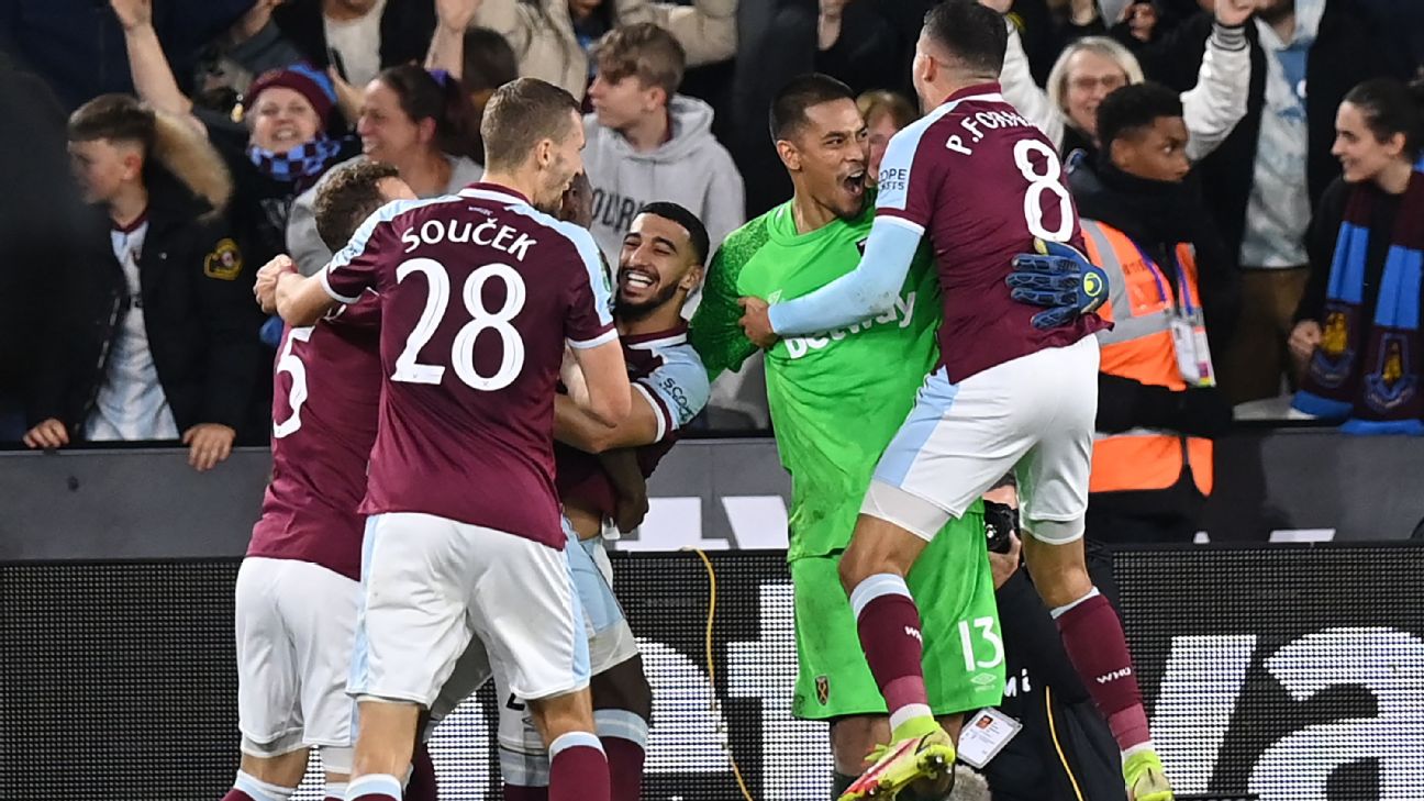 · West Ham United advance 5-3 on penaltiesManchester City's bid for fifth straight Carabao Cup ends as West Ham claim win on penalties