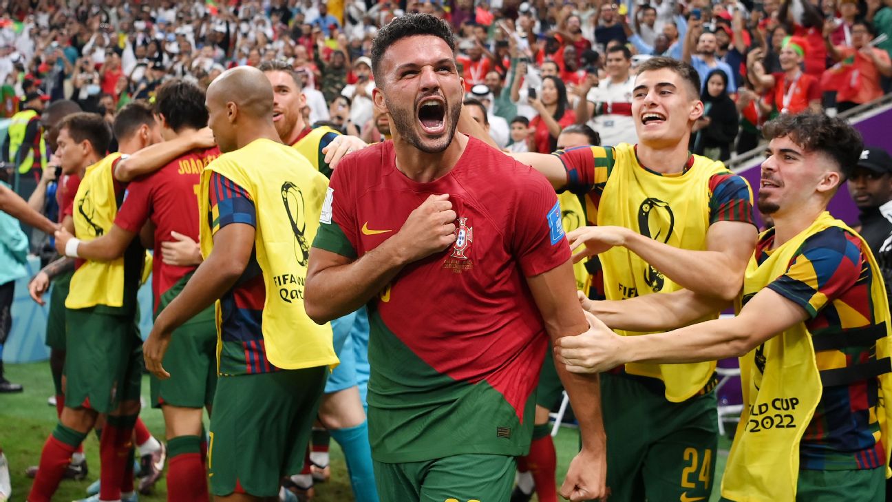 Goncalo Ramos netted a hat trick in his first World Cup start as Portugal stormed into the quarterfinals with a 6-1 win over Switzerland on Tuesday.