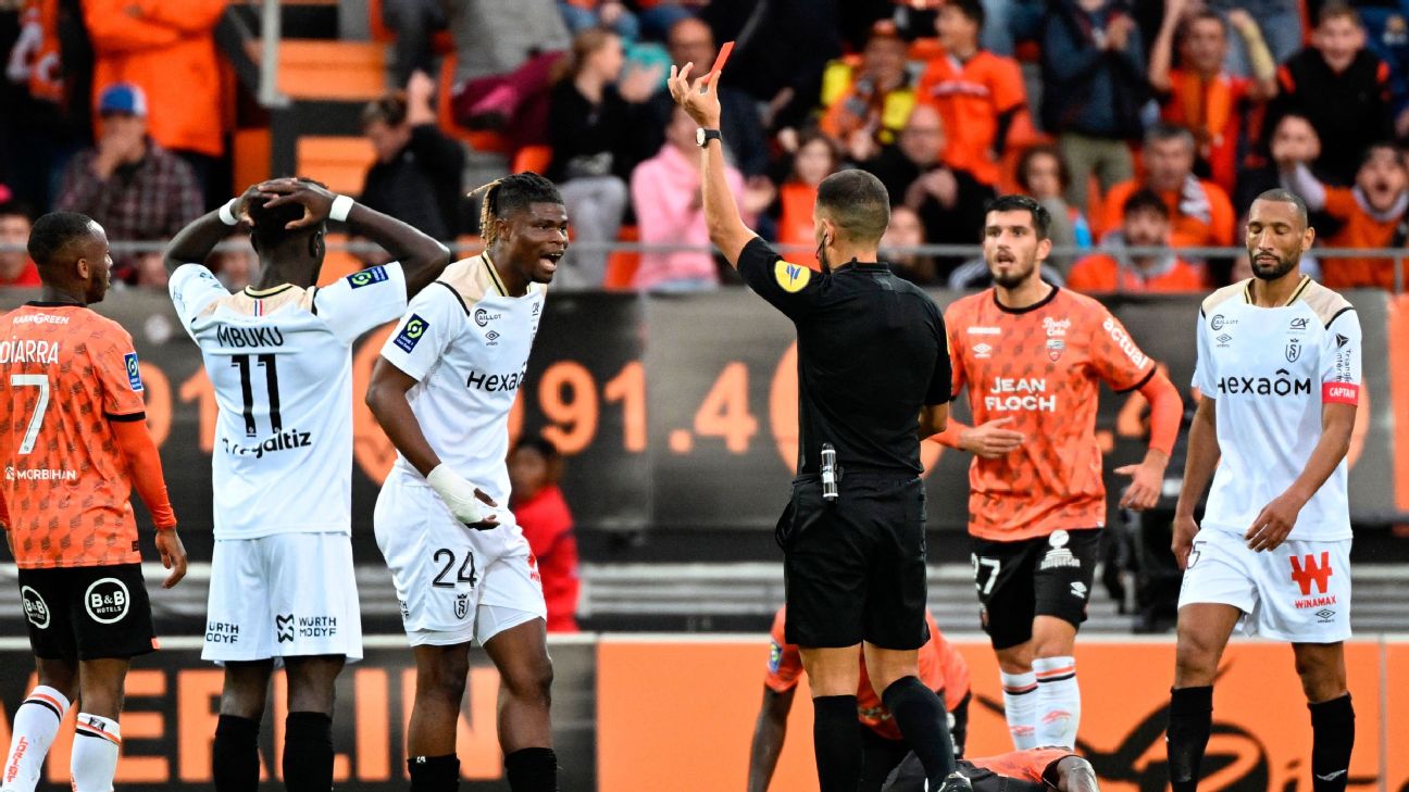 · French Ligue 1Lorient miss out on top spot after goalless draw with nine-man Reims