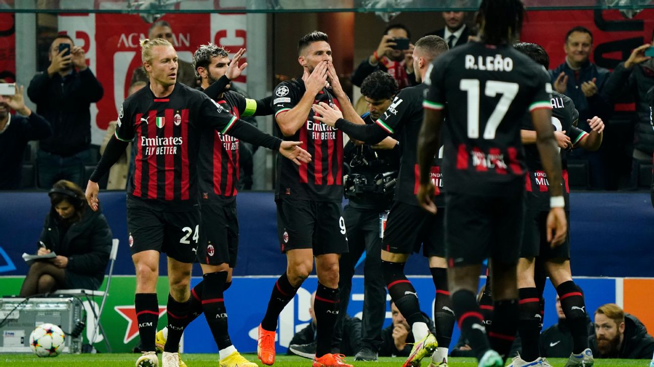 Olivier Giroud scored two goals and created another as AC Milan crushed Salzburg 4-0 on Wednesday to reach the Champions League knockout stages.